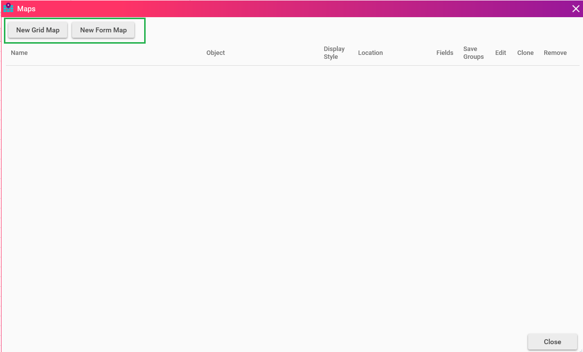 Now Maps window will open, presenting you with the option of choosing between Grid Map and Form Map. Based on your specific needs and preferences, you can make the appropriate selection. If you require a tabular view of the data, opt for the Grid Map. On the other hand, if you prefer a more structured and organized display, go for the Form Map.