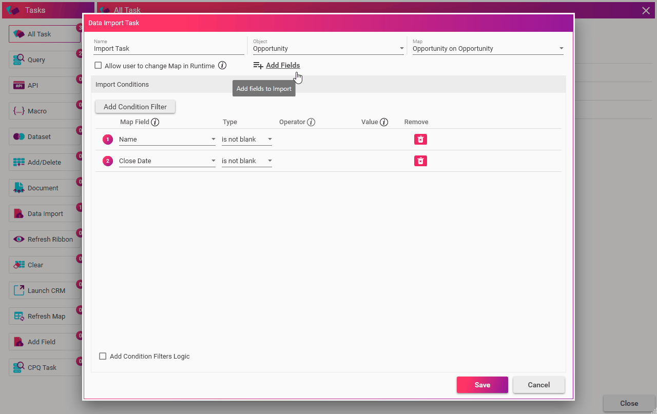 We’re excited to introduce an enhancement to the **Import Task** that allows users to selectively choose fields for mapping. This new capability simplifies the process, reducing clutter and minimizing the risk of errors, especially when working with large datasets.