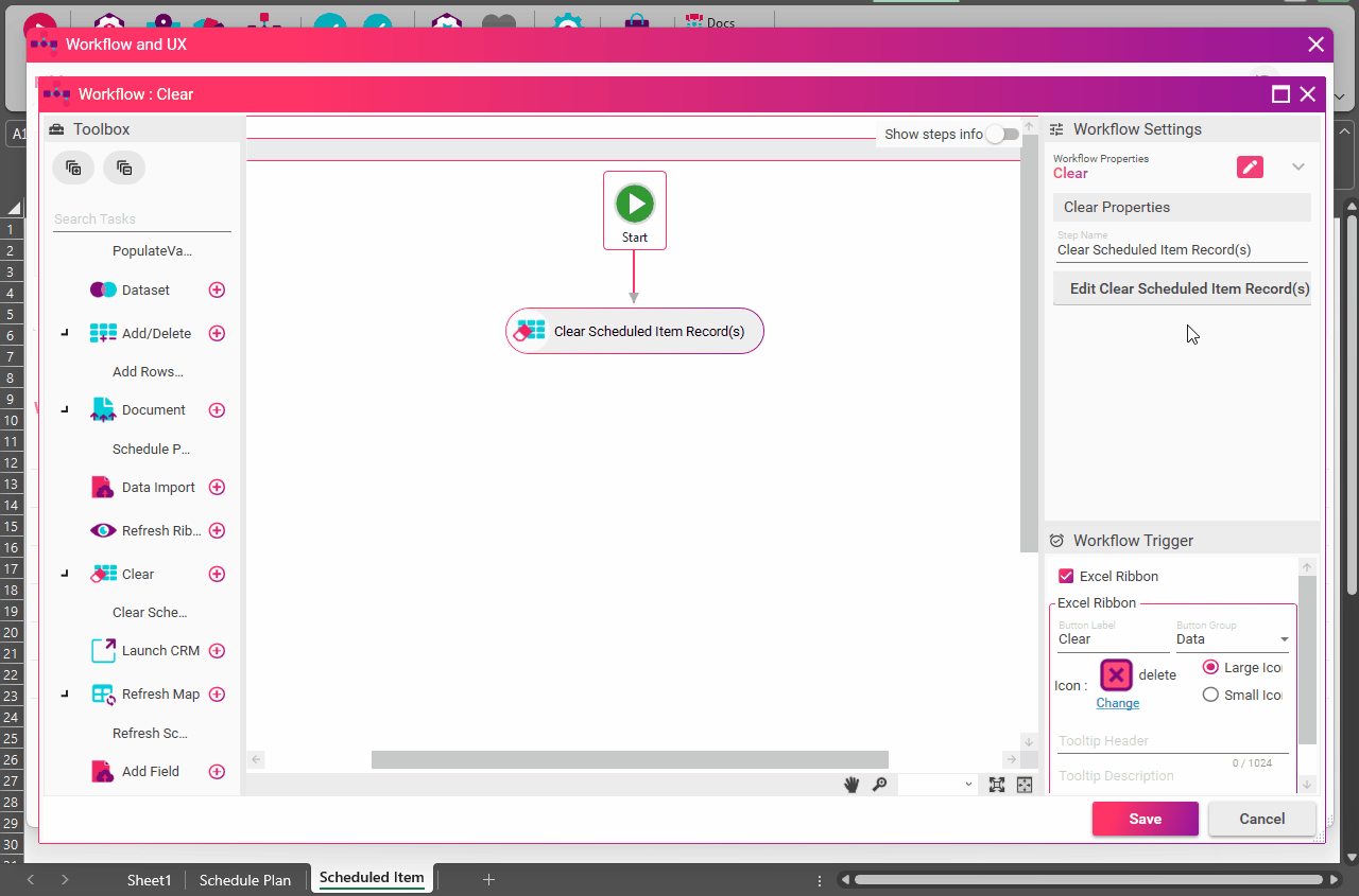 A new **Conditional Filter** option is available in Clear All mode, aligning with Delete Tasks. Clear operations now only run when conditions are met, preventing unintended data clearing and giving Designers greater control.