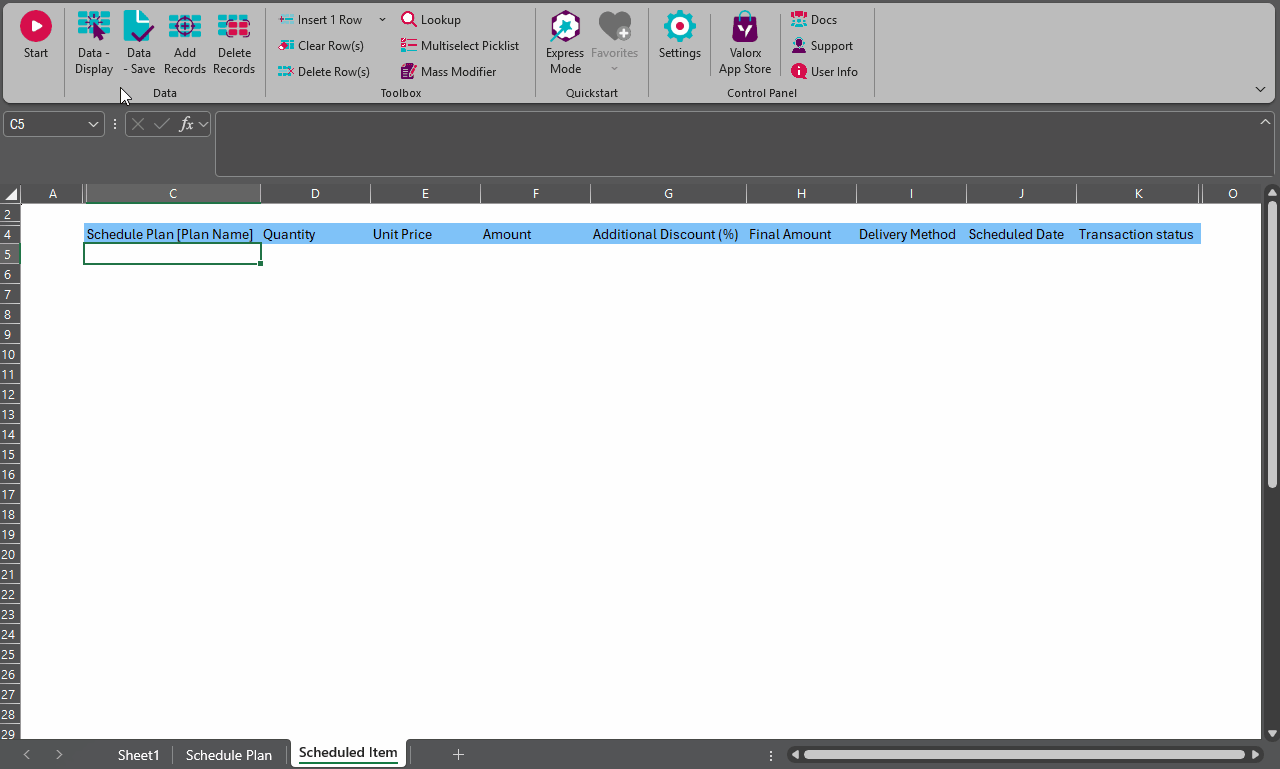 After your grid is created, you can **refresh it with the latest Salesforce data, make edits, or delete it** from the “This File” section.