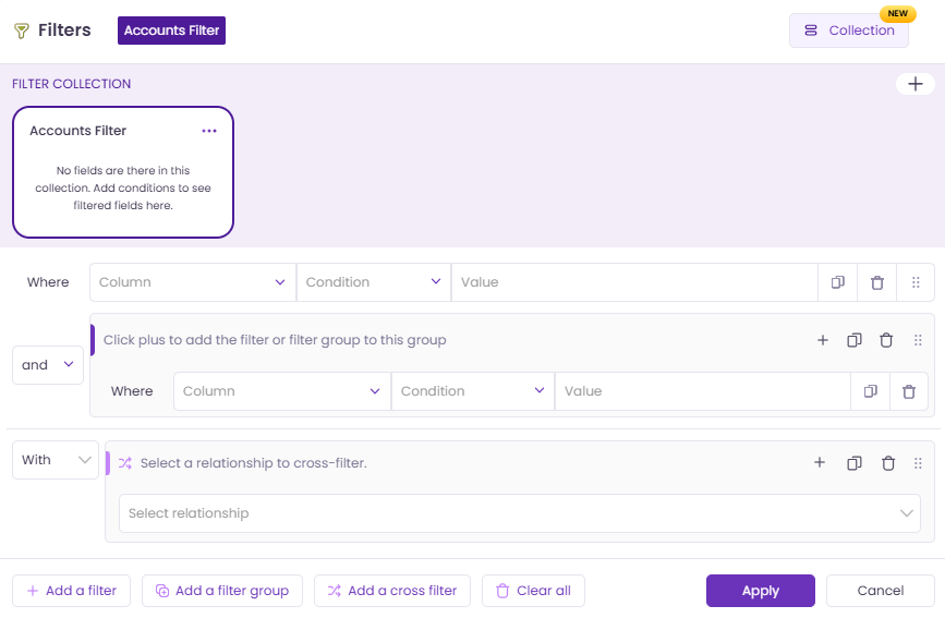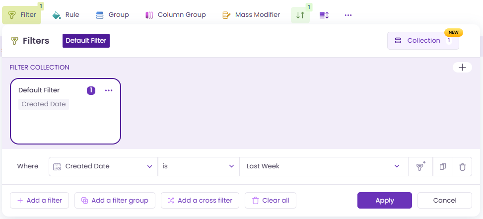 Select a Filter Collection to instantly apply a saved filter configuration.