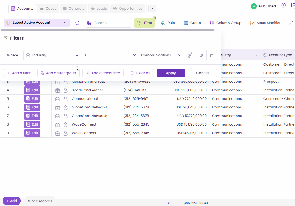 Filters help you narrow down grid data so you can focus on the records that matter. Similar to Excel-style filtering, filters temporarily hide records that do not meet your criteria, making analysis faster and more effective.
